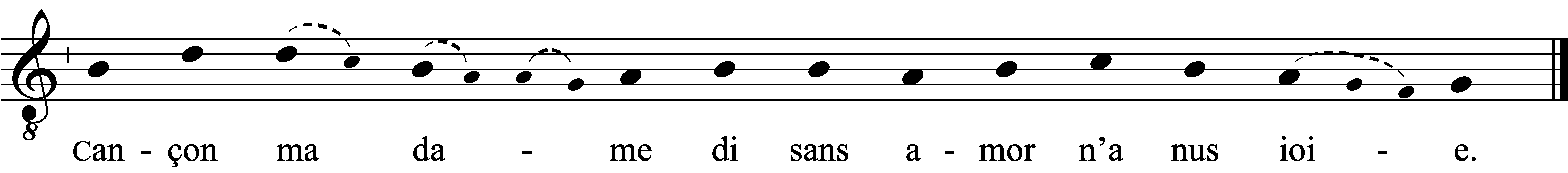 - Cançon ma dame di sans amor n’a nus ioie. (st. V, final refrain)